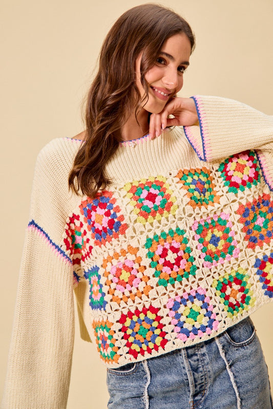 POL Halter Neck Sleeveless Crochet Top with Seashell & Mirror Dangle Trim