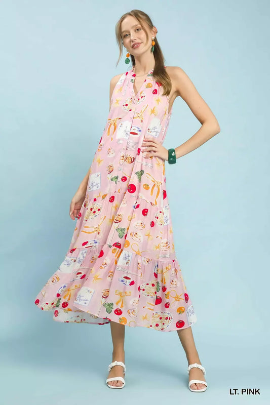 Stripe Textured Knit Ruffle Tie Back Maxi Dress