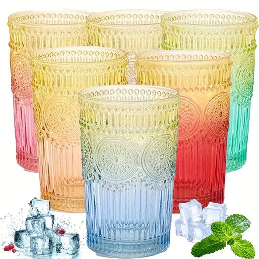 Set of 6 Vintage Colored Embossed Glassware Glasses