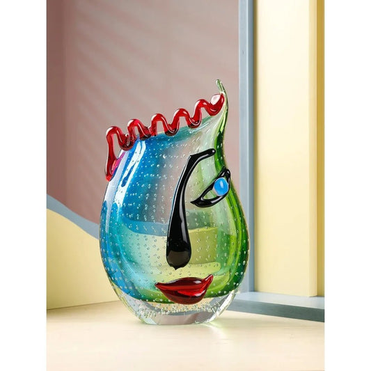 Handcrafted Multicolor Murano-Style Face Art Glass Vase