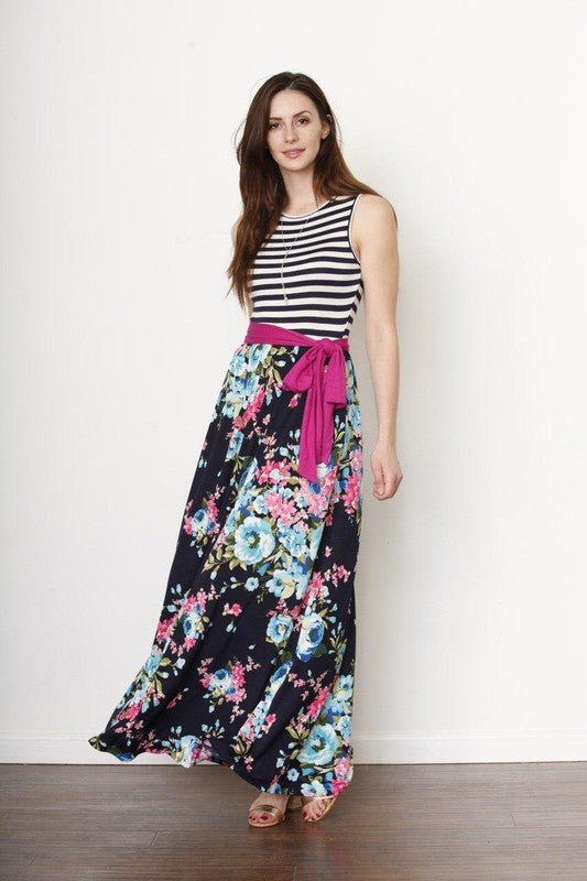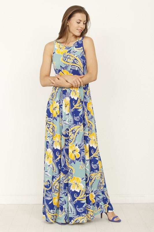 Goldie Floral High Waist Sleeveless Flared Long Dr