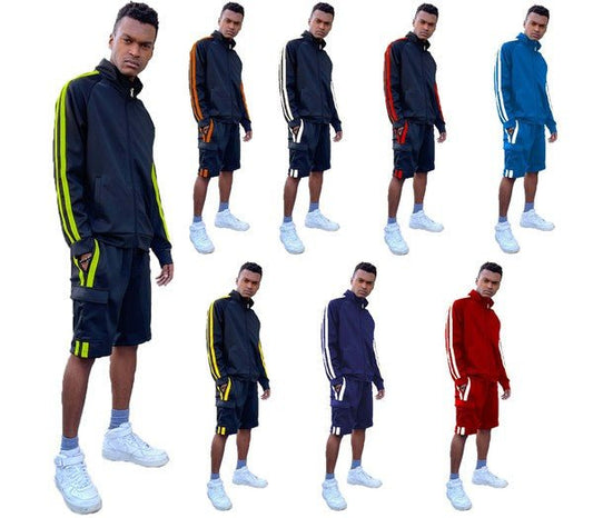 Two Stripe Cargo Pocket Track Jacket Short Suit