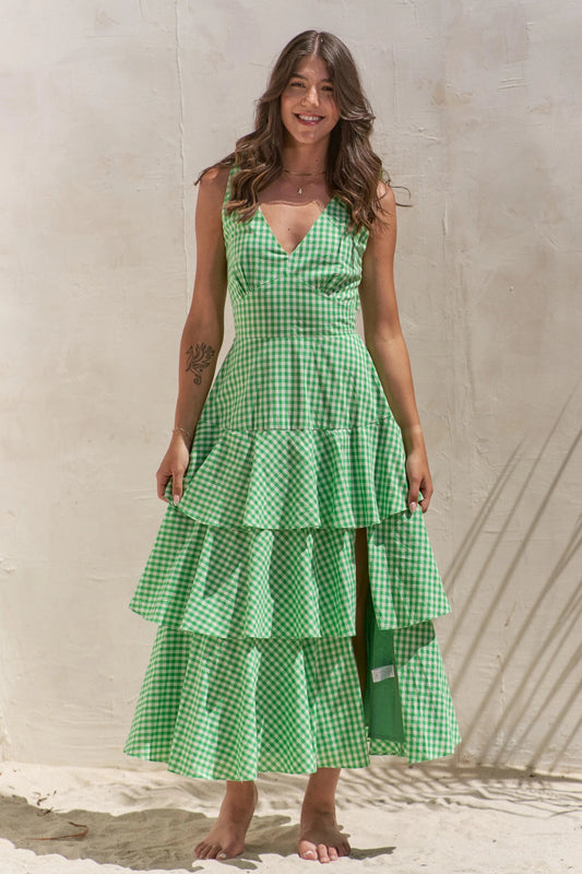 Jade By Jane Sleeveless Gingham Print Tiered Midi Dress