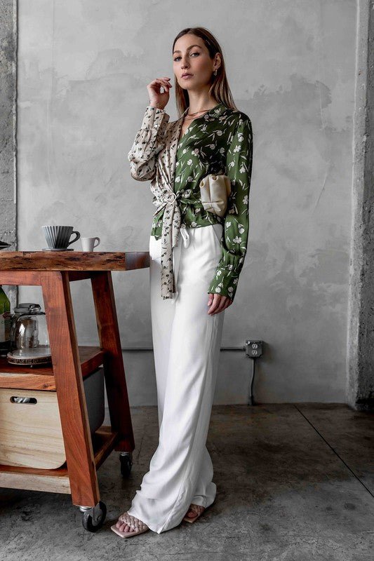 Umgee Floral Pleated Wide-Leg Pants