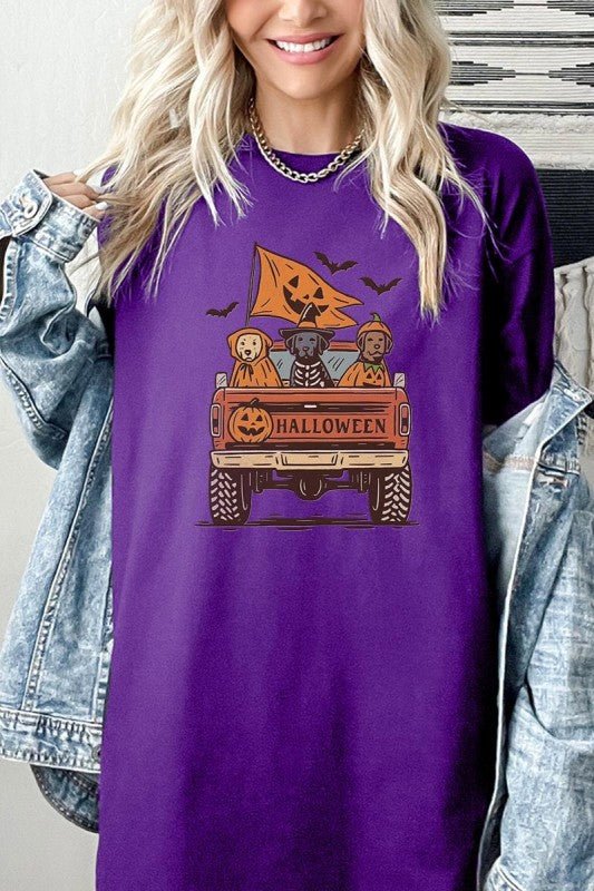 Halloween Truck Dogs Graphic Heavy Cotton Tee