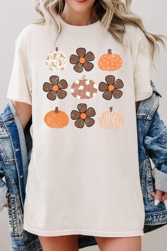 Pumpkins & Flowers Fall Graphic Heavy Cotton Tee