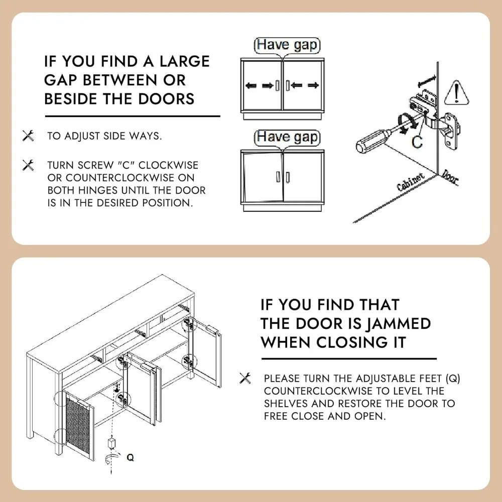 Boho Style Rattan Buffet Cabinet with Adjustable Shelves and 4 Doors, Farmhouse Credenza for Coffee and Storage