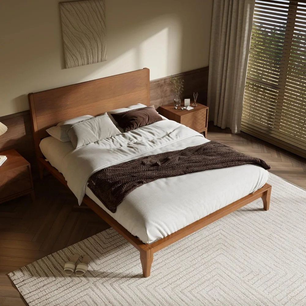 - Attractive Full Bed Frame: Natural bamboo textures highlight rustic charm, and clean contours outline a pretty look that easily illuminates your bedroom. The Mid-century Modern style brings traditional warmth & complements any room decor