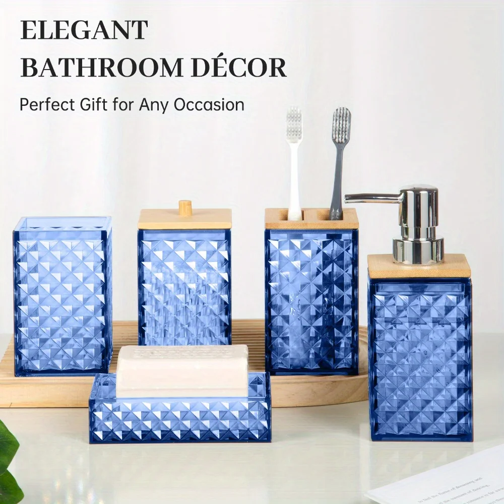 Plaid Plastic Bathroom Accessories Set with Swab Box, Hand Bottle, Soap Box, Toothbrush Holder & Mouthwash Cup, Modern Bathroom